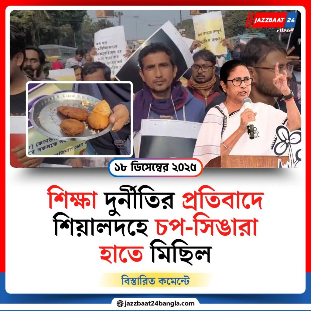 Jazzbaat 24 Bangla > রাজ্য > শিক্ষা দুর্নীতির প্রতিবাদে শিয়ালদহে চপ-সিঙারা হাতে মিছিল