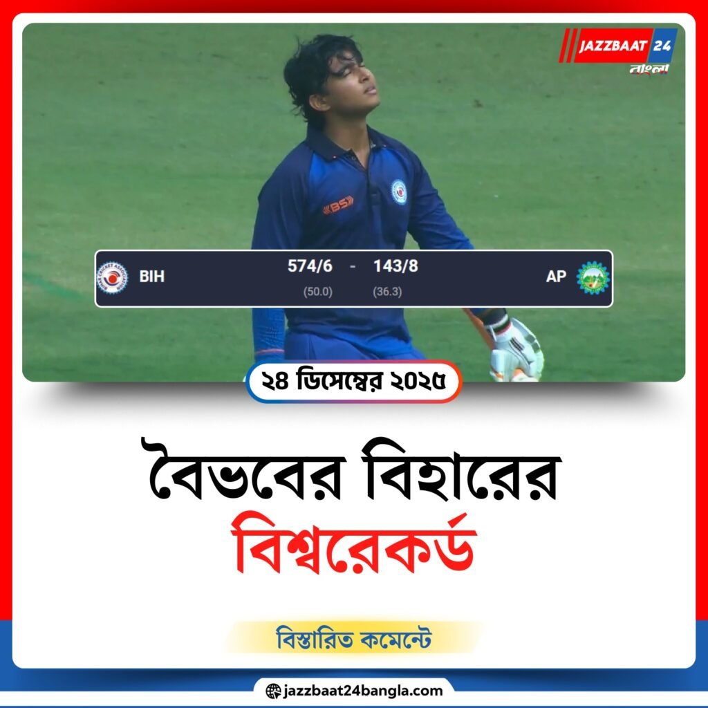 বিহারের এই পারফরম্যান্স শুধু জয় নয়, এটি এক নজির গড়েছে লিস্ট এ ক্রিকেটের ইতিহাসে। বৈভব ও সাকিবুলের ব্যাটে রেকর্ড হওয়া ইনিংস আগামী প্রজন্মের ক্রিকেটারদের জন্য অনুপ্রেরণা হিসেবে থাকবে।