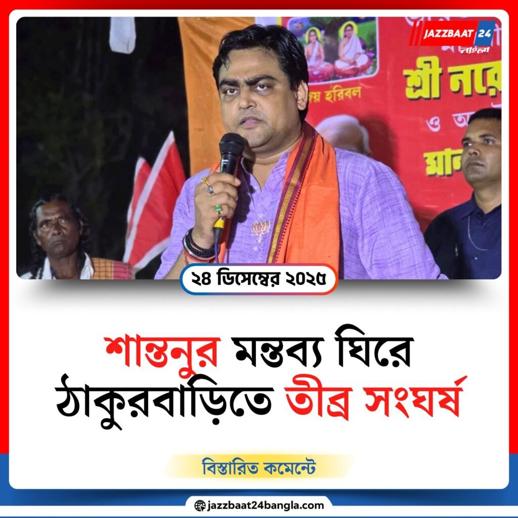 কেন্দ্রীয় প্রতিমন্ত্রী শান্তনু ঠাকুরের একটি মন্তব্যকে কেন্দ্র করে উত্তর ২৪ পরগনার ঠাকুরবাড়িতে চরম উত্তেজনা ছড়াল। মঙ্গলবার মমতাবালা ঠাকুরের অনুগামীদের প্রতিবাদ কর্মসূচিকে ঘিরে দু’পক্ষের মধ্যে ব্যাপক ধস্তাধস্তি ও মারধরের ঘটনা ঘটে। পরিস্থিতি এতটাই উত্তপ্ত হয়ে ওঠে যে কার্যত ‘গৃহযুদ্ধ’-এর ছবি ধরা পড়ে ঠাকুরবাড়ি চত্বরে।