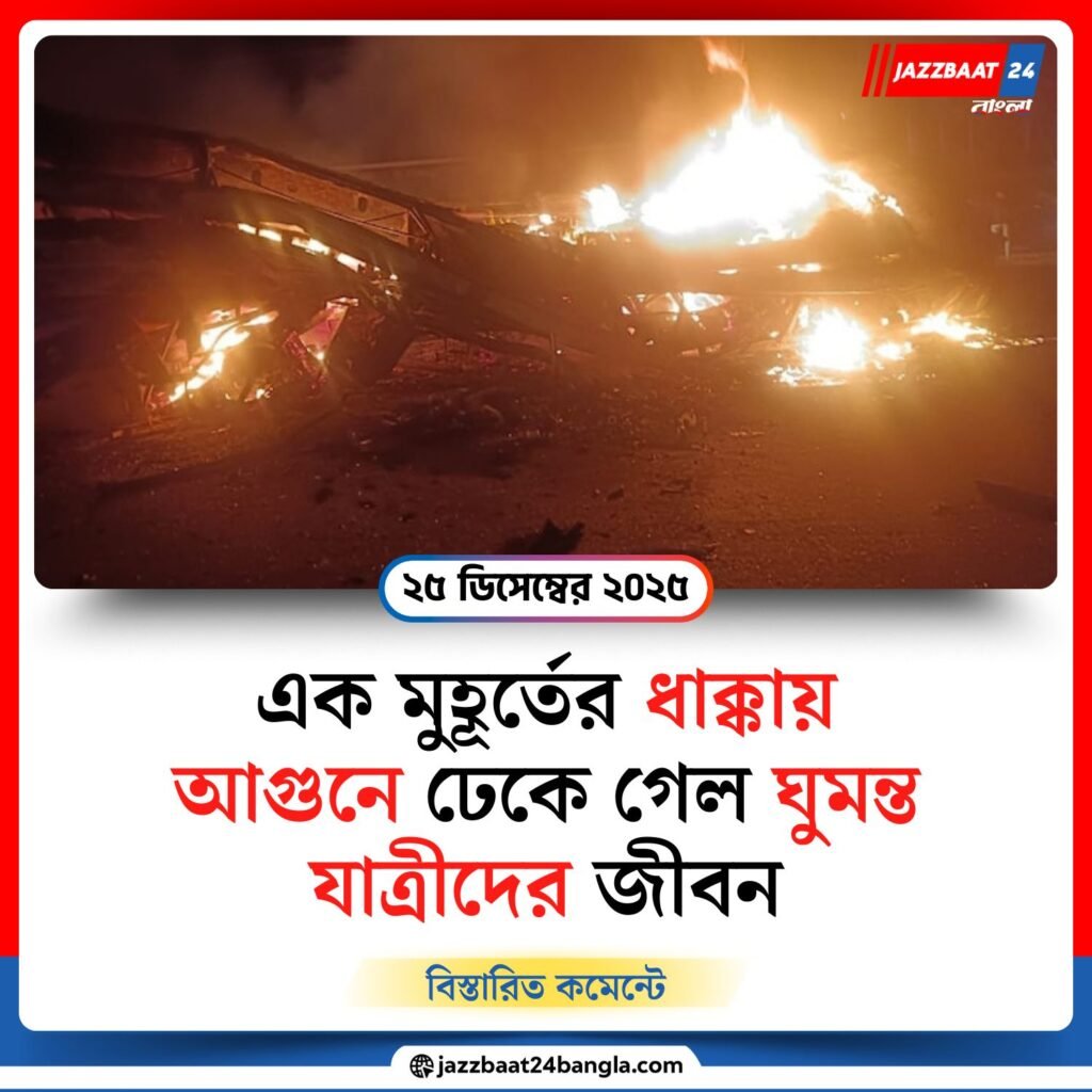 Jazzbaat 24 Bangla > দেশ > বিকট শব্দে ভেঙে গেল ভোর, আগুনে পুড়ে ছাই স্লিপার বাস