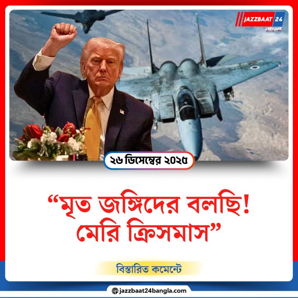 এই বক্তব্যের মাধ্যমে ট্রাম্প তাঁর প্রশাসনের সন্ত্রাসবিরোধী অবস্থানও স্পষ্ট করেন। তিনি লেখেন, “আমার নেতৃত্বে আমেরিকা কখনও উগ্র ইসলামিক সন্ত্রাসবাদকে মাথা তুলে দাঁড়াতে দেবে না।” পোস্টের শেষে তিনি মার্কিন সেনাদের অভিনন্দন জানিয়ে বড়দিনের শুভেচ্ছা জানান।