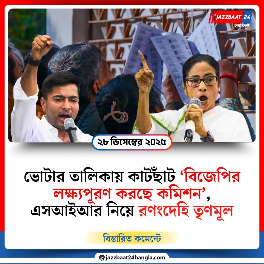 রাজ্যে বিধানসভা নির্বাচনের দামামা বাজার অনেক আগেই চড়ছে রাজনৈতিক পারদ। এবার ইস্যু— ভোটার তালিকা সংশোধন বা এসআইআর (Special Intervention Roll)। এই প্রক্রিয়া নিয়ে সরাসরি নির্বাচন কমিশনের বিরুদ্ধে পক্ষপাতিত্বের অভিযোগ তুলে সরব হলো তৃণমূল কংগ্রেস। শাসকদলের দাবি, বিজেপি যে ‘২ কোটি’ নাম বাদ দেওয়ার লক্ষ্যমাত্রা বেঁধে দিয়েছে, কমিশন কার্যত তাদের ‘বি-টিম’ হয়ে সেই লক্ষ্যপূরণেই নেমেছে।