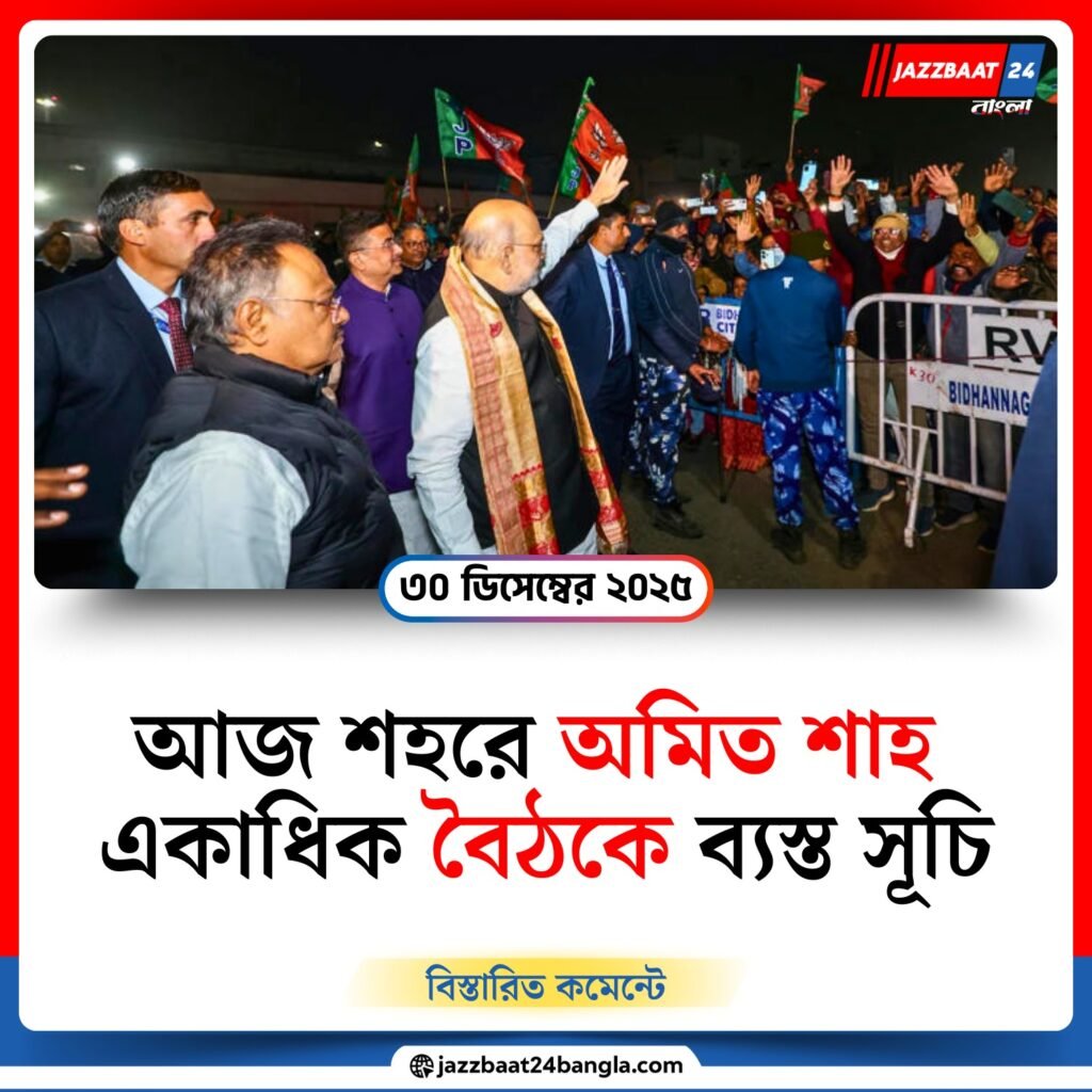 স্বরাষ্ট্র মন্ত্রী অমিত শাহ আজ ৩০ ডিসেম্বর কলকাতায় একাধিক কর্মসূচিতে অংশ নিতে চলেছেন। প্রশাসনিক ও রাজনৈতিক সূত্রের খবর, দুপুর বারোটার আগেই তিনি শহরের হোটেল অলট এয়ারে পৌঁছবেন। সেখানে পৌঁছনোর পর মধ্যাহ্নভোজের বিরতি সহ টানা প্রায় চার ঘণ্টা তিনি বিভিন্ন গুরুত্বপূর্ণ বৈঠক ও আলোচনায় ব্যস্ত থাকবেন বলে জানা গেছে। এই বৈঠকগুলিতে দলের শীর্ষ নেতৃত্ব ও রাজ্যস্তরের নেতারা উপস্থিত থাকতে পারেন বলে সূত্রের দাবি।