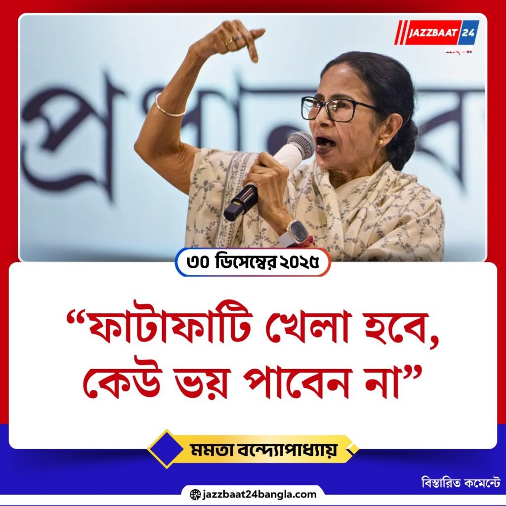 দলের কর্মীদের উদ্দেশে বার্তা দিয়ে মমতা বলেন, আপাতত সব উৎসব-পিকনিক বন্ধ রেখে ভোট ও এসআইআর সংক্রান্ত কাজে মন দিতে হবে। ২০২৬-এর বিধানসভা ভোটের জন্য নতুন স্লোগানও ঘোষণা করেন তিনি “ফাটাফাটি খেলা হবে।” কর্মীদের ‘শক্তিশালী হয়ে ঘোরার’ আহ্বান জানিয়ে রাস্তায় নামার ডাক দেন মুখ্যমন্ত্রী। তাঁর কথায়, “গণতন্ত্রকে বাঁচানোর লড়াই শুরু হয়ে গিয়েছে।”