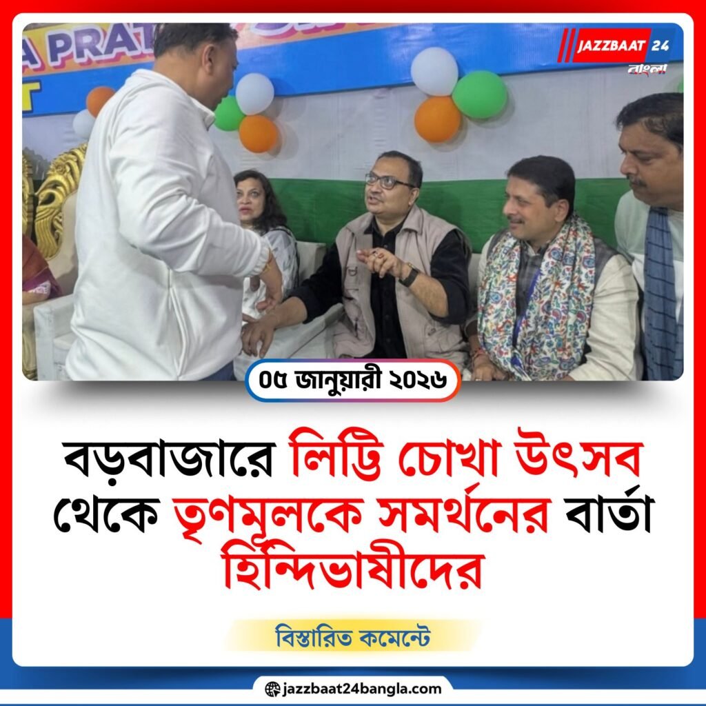 ছাব্বিশের বিধানসভা নির্বাচনে তৃণমূল কংগ্রেসকে পূর্ণ সমর্থনের বার্তা দিলেন রাজ্যের হিন্দিভাষী সমাজ। রবিবার কলকাতার বড়বাজারে আয়োজিত ‘লিট্টি চোখা উৎসব’-এর মঞ্চ থেকেই স্পষ্টভাবে জানানো হয়, উন্নয়নের স্বার্থে মমতা বন্দ্যোপাধ্যায়কে চতুর্থবারের জন্য মুখ্যমন্ত্রী হিসেবে দেখতে চান তাঁরা।