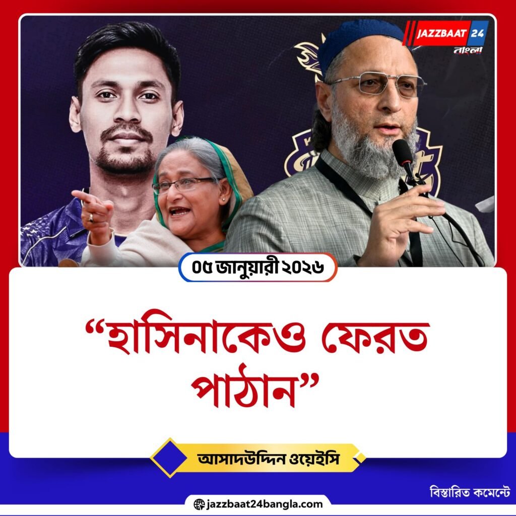 বাংলাদেশি পেসার মুস্তাফিজুর রহমানকে আইপিএলে খেলতে না দিয়ে দেশে ফেরানোর সিদ্ধান্ত ঘিরে বিতর্ক ক্রমশ রাজনৈতিক রং নিচ্ছে। নিছক ক্রিকেটীয় সিদ্ধান্তের গণ্ডি ছাড়িয়ে এই ইস্যুতে জড়িয়ে পড়েছে কূটনীতি, নিরাপত্তা ও দ্বৈত মানদণ্ডের প্রশ্ন। এবার এই বিতর্কে সরাসরি আক্রমণ শানালেন এআইএমআইএম প্রধান আসাদউদ্দিন ওয়েইসি।
