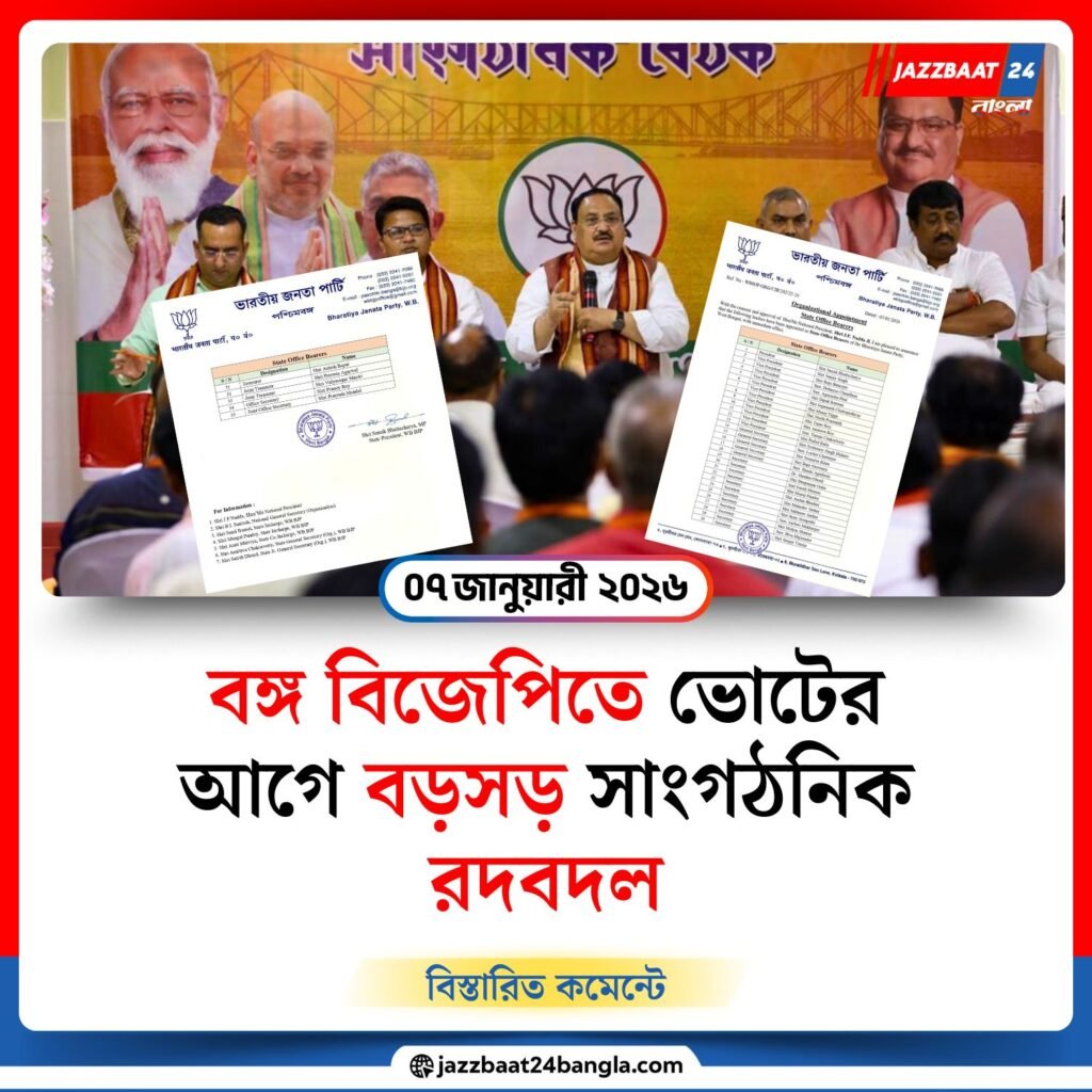 বিধানসভা ভোটের দফা এগিয়ে আসার সঙ্গে সঙ্গে এই সাংগঠনিক রদবদল বিজেপির নির্বাচনী কৌশল ও প্রস্তুতিকে নতুন মাত্রা দেবে।