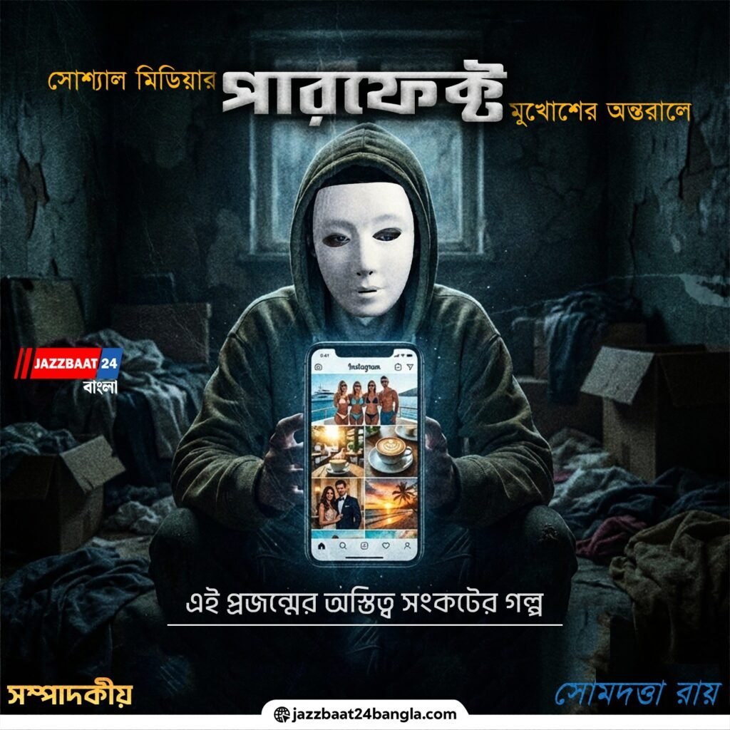 আজকাল ঘুম থেকে উঠে ফোনের স্ক্রিনে চোখ রাখলেই এক নিখুঁত পৃথিবীর দেখা মেলে। সেখানে সবাই সুখী, সবার সম্পর্ক মধুময়, প্রত্যেকের ডাইনিং টেবিলে সাজানো রাজকীয় খাবার, আর পর্যটন কেন্দ্রগুলো যেন একেকটি স্বর্গ। কিন্তু এই উজ্জ্বল পর্দার আড়ালে যে অন্ধকার জমাট বাঁধছে, তা আমরা কজন দেখছি? সোশ্যাল মিডিয়া আর এআই (AI) প্রযুক্তির এই যুগে আমরা এক ভয়াবহ ‘প্রদর্শনী ব্যাধিতে’ আক্রান্ত। রিল আর রিয়েল লাইফের মধ্যেকার দূরত্বটা এখন আকাশ-পাতাল।
