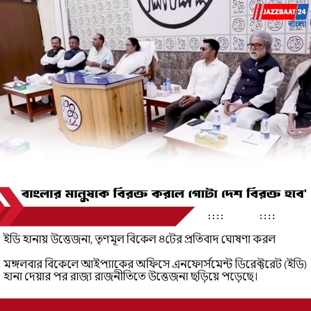 মঙ্গলবার বিকেলে আইপ্যাকের অফিসে এনফোর্সমেন্ট ডিরেক্টরেট (ইডি) হানা দেয়ার পর রাজ্য রাজনীতিতে উত্তেজনা ছড়িয়ে পড়েছে। সল্টলেকের আইপ্যাক অফিস এবং কর্ণধার প্রতীক জৈনের বাড়িতে হানা দেয়ার খবর পেয়ে মুখ্যমন্ত্রী মমতা বন্দ্যোপাধ্যায় তৎক্ষণাৎ সেক্টর ফাইভের অফিসে পৌঁছে সাংবাদিকদের সামনে কেন্দ্রীয় সংস্থার বিরুদ্ধে কঠোর ভাষায় প্রতিক্রিয়া জানিয়েছেন। তিনি রাজ্যজুড়ে প্রতিবাদে মিছিল করার ঘোষণা দেন। মমতা বলেন, “আজ বিকাল ৪টা থেকে সব ব্লক ও ওয়ার্ডে প্রতিবাদ মিছিল হবে। বিজেপির এই চুরি-ডাকাতি-লুটের বিরুদ্ধে মানুষ প্রতিক্রিয়া দেখাবে। যদি বাংলার মানুষকে বিরক্ত করা হয়, তবে গোটা দেশ বিরক্ত হবে।”