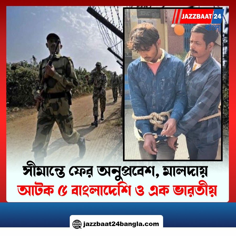 মালদা জেলার হবিবপুর ব্লকে ভারত-বাংলাদেশ সীমান্তে ফের অনুপ্রবেশের চেষ্টা ব্যর্থ করে দিল বিএসএফ। সোমবার পান্নাপুর বিওপি এলাকার সীমান্তে অবৈধভাবে সীমান্ত পার হওয়ার চেষ্টা করার সময় পাঁচজন বাংলাদেশি নাগরিককে আটক করেন ৮৮ ব্যাটালিয়নের বিএসএফ জওয়ানরা। একই সঙ্গে অনুপ্রবেশে সাহায্যের অভিযোগে এক ভারতীয় নাগরিককেও গ্রেফতার করা হয়েছে। ধৃতদের মঙ্গলবার মালদা জেলা আদালতে পেশ করে হবিবপুর থানার পুলিশ।
