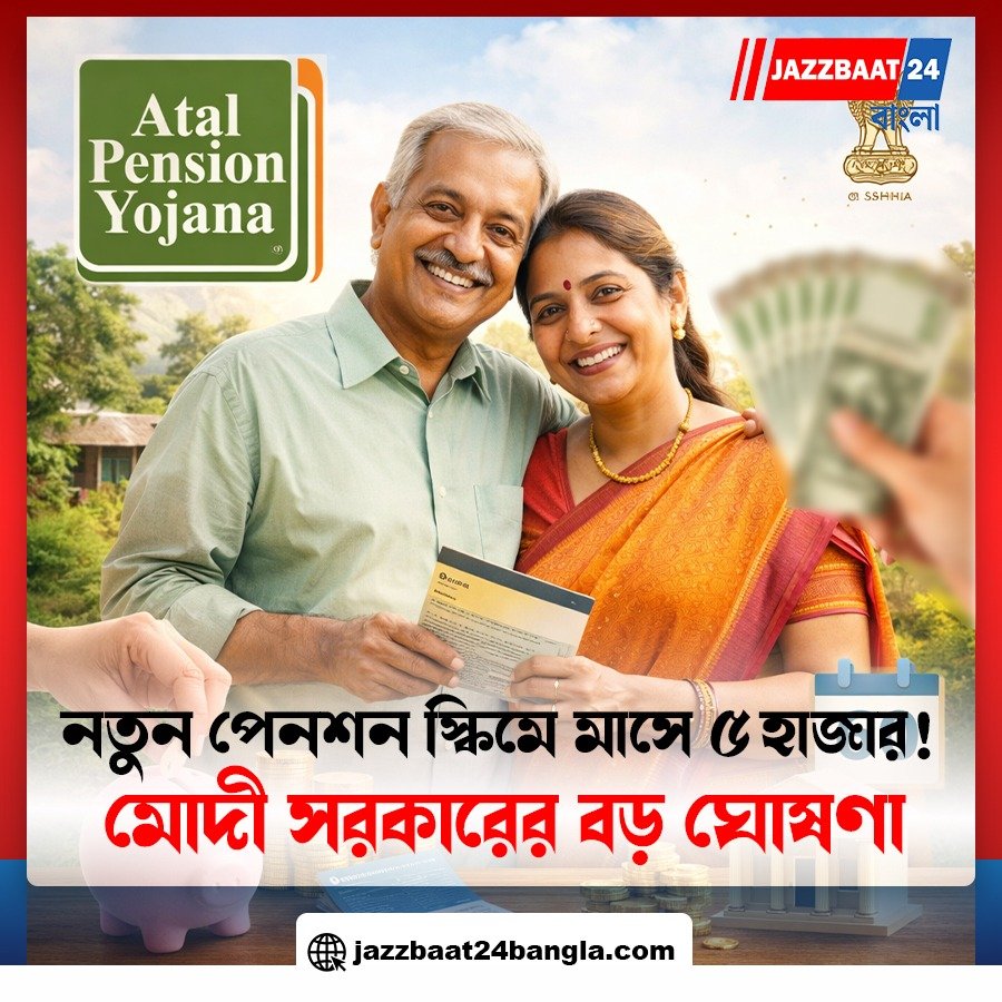 ভারতের কেন্দ্রীয় সরকারের অটল পেনশন যোজনা‑র অধীনে এবার অবসরের পর মাসে সর্বোচ্চ ৫,০০০ টাকা পেনশন পাওয়ার সুযোগ দেওয়া হয়েছে। এই পরিকল্পনার উদ্দেশ্য হলো ব্যক্তিদের আর্থিক নিরাপত্তা নিশ্চিত করা, বিশেষত অবসর জীবনে জীবনযাত্রা সহজ করা।