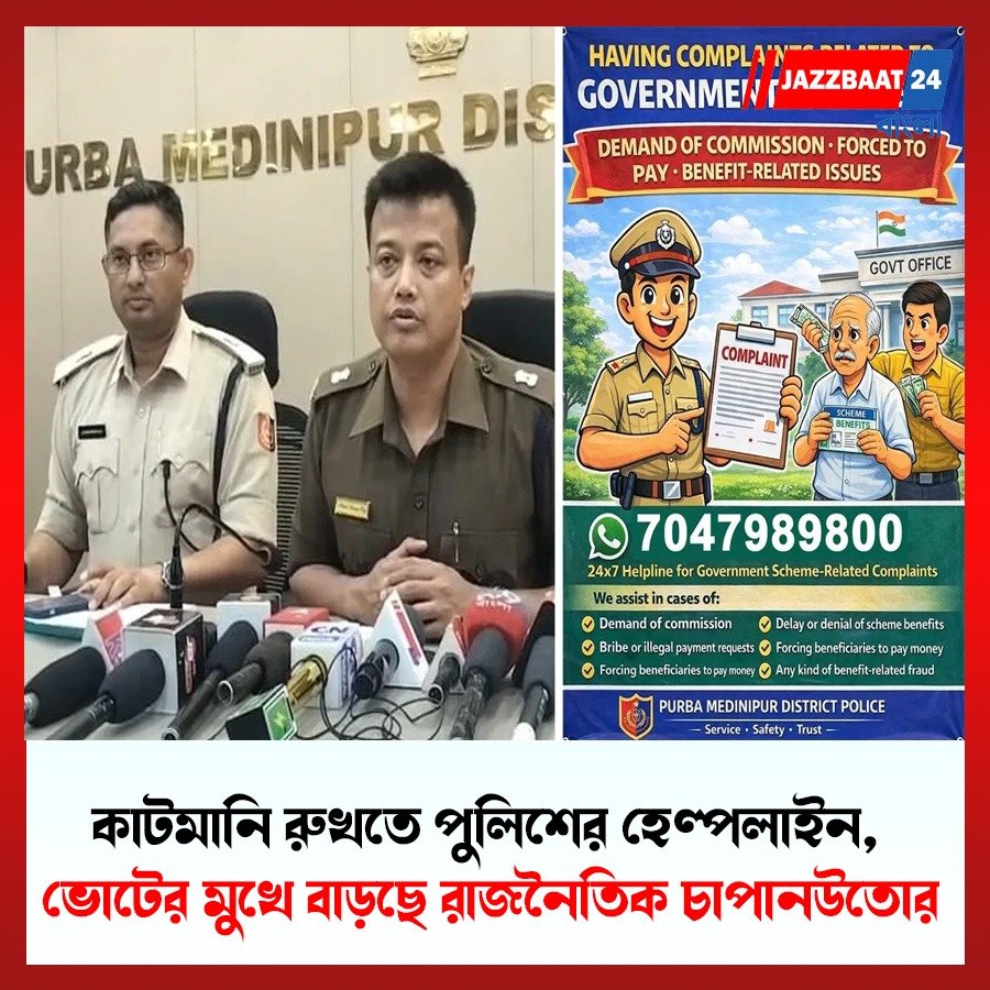 সরকারি প্রকল্পে উপভোক্তাদের কাছ থেকে কাটমানি নেওয়ার অভিযোগ নতুন নয়। দীর্ঘদিন ধরেই এই ইস্যুতে শাসকদলের বিরুদ্ধে সরব বিরোধীরা। বিধানসভা নির্বাচনের প্রাক্কালে এবার সরাসরি মাঠে নামল পূর্ব মেদিনীপুর জেলা পুলিশ। কাটমানি, প্রকল্পের সুবিধা দিতে দেরি বা অযথা খারিজ—এই ধরনের অভিযোগ জানাতে ২৪ ঘণ্টার হেল্পলাইন নম্বর চালু করা হয়েছে। নম্বরটি হল ৭০৪৭৯৮৯৮০০।