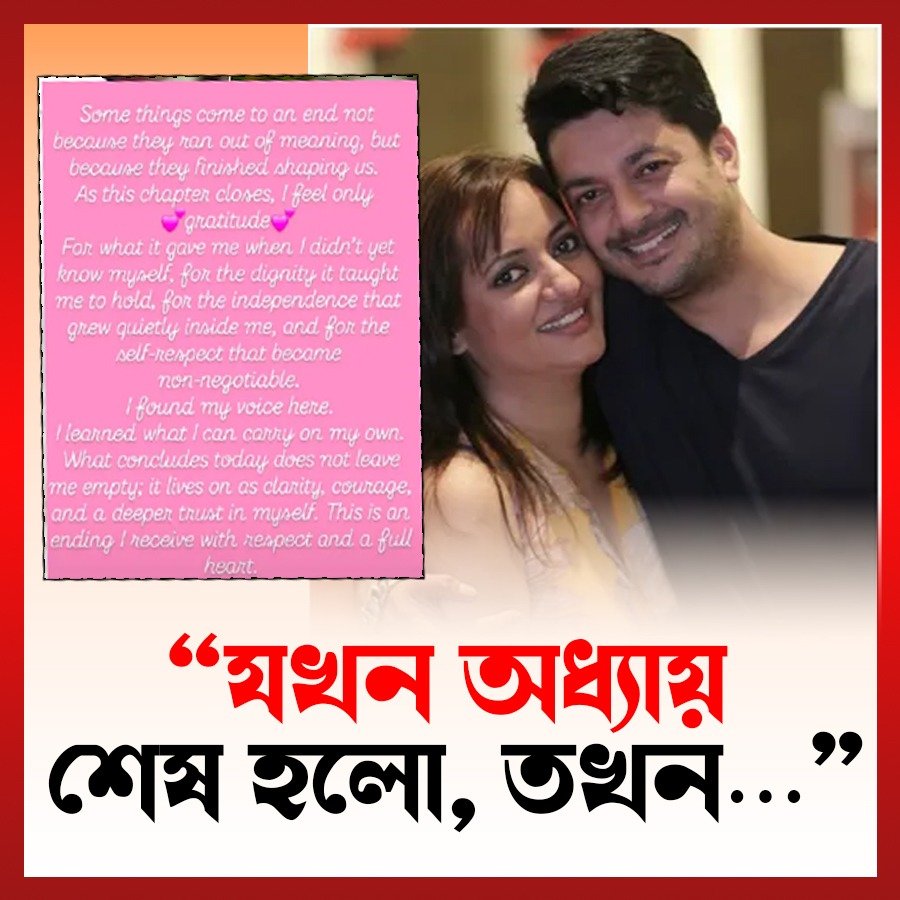 পোস্টে আরও উল্লেখ করেন, আজ তিনি নিজের ভার নিজেই বহন করতে পারেন। অধ্যায় শেষ হলেও নিজেকে শূন্য বা রিক্ত মনে হচ্ছে না, বরং এই সিদ্ধান্ত তাঁকে দিয়েছে আরও স্বচ্ছতা, সাহস এবং নিজের উপর ভরসা রাখার শক্তি। এই কথাগুলিকেই অনেকে আইনি বিচ্ছেদের প্রক্রিয়া শেষ হওয়ার ইঙ্গিত হিসেবে দেখছেন।