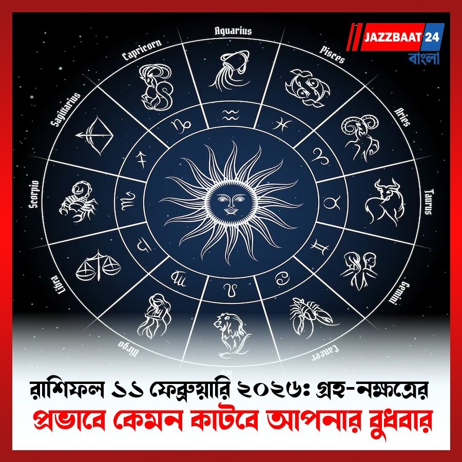 Jazzbaat 24 Bangla > ধর্মকর্ম > রাশিফল ১১ ফেব্রুয়ারি ২০২৬: গ্রহ-নক্ষত্রের প্রভাবে কেমন কাটবে আপনার বুধবার