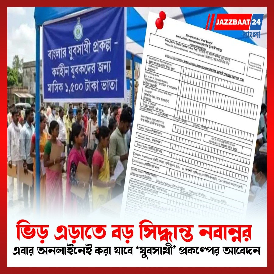 Jazzbaat 24 Bangla > রাজ্য > ভিড় এড়াতে বড় সিদ্ধান্ত নবান্নর! এবার অনলাইনেই করা যাবে ‘যুবসাথী’ প্রকল্পের আবেদন