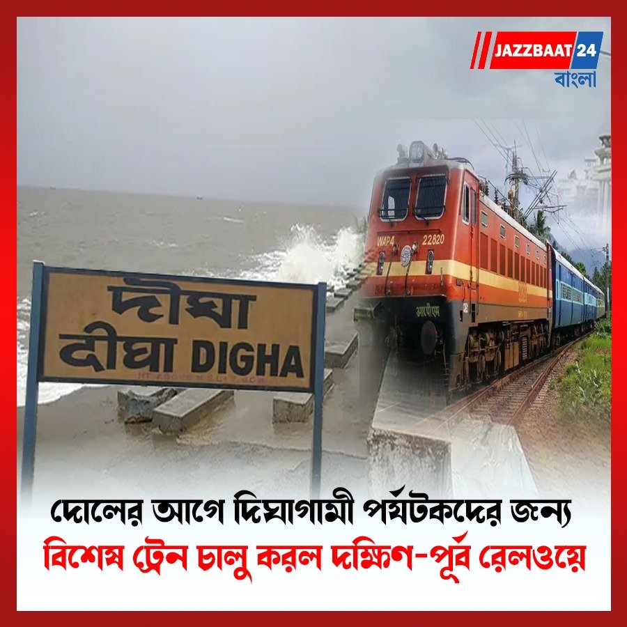 দোল উৎসবের আগে পর্যটকদের সুবিধার্থে দিঘার উদ্দেশে বিশেষ ট্রেন চালানোর সিদ্ধান্ত নিল দক্ষিণ-পূর্ব রেলওয়ে। এর ফলে উৎসবের মরশুমে সৈকত শহর দিঘা-য় যাতায়াত আরও সহজ হবে বলে আশা করা হচ্ছে।