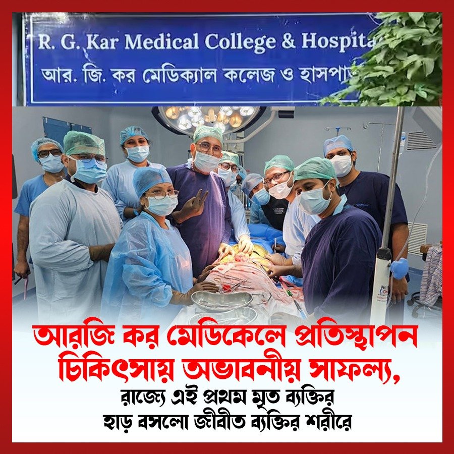সম্পূর্ণ বিনামূল্যে চিকিৎসায় বেনজির অস্এপচারে মিললো সাফল্য। পূর্ব ভারতে প্রথম হাড় প্রতিস্থাপন করে নজির গড়ল আরজি কর মেডিক্যাল কলেজ ও হাসপাতাল। এবারে মৃত ব্যক্তির হাড় জুড়ল জীবিত মানুষের শরীরে! শুনতে অবাক লাগলেও বাস্তবে সত্যিই ঘটনাই বটে। বলা চলে অসাধ্য সাধন আরজি কর মেডিক্যাল কলেজ হাসপাতালের।