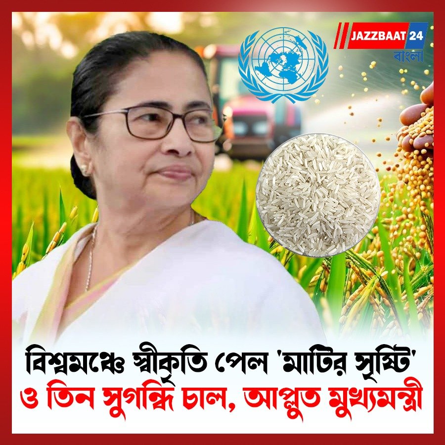 আরও একধাপ এগিয়ে গেল বাংলা! ফের আরও একবার বিশ্বমঞ্চে স্বীকৃতি আদায় পশ্চিমবঙ্গ সরকারের। পশ্চিমবঙ্গের ‘মাটির সৃষ্টি’ প্রকল্প এবং বাংলার তিন ধরনের সুগন্ধি চাল রাষ্ট্রপুঞ্জের (FAO) পক্ষ থেকে আন্তর্জাতিক স্বীকৃতি পেল।