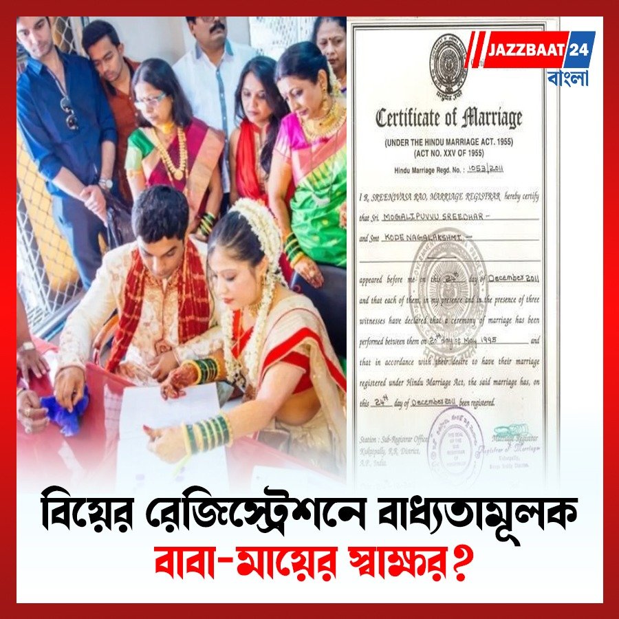 তাছাড়া, এই ফর্ম জমা দেওয়ার সময় বাবা-মায়ের আধার কার্ড বা সরকারি পরিচয়পত্র এবং পাসপোর্ট সাইজের ছবি সংযুক্ত করা আবশ্যক। ফর্ম জমা দেওয়ার ১০ দিনের মধ্যে বিয়ের রেজিস্ট্রেশন সম্পর্কিত তথ্য স্বয়ংক্রিয়ভাবে বাবা-মায়েদের হোয়াটসঅ্যাপ ম্যাসেজ-এর মাধ্যমে পাঠানো হবে। যদি কোনো সন্দেহ থাকে, তাহলে রেজিস্টার অফিসের কর্মকর্তারা সরাসরি বাবা-মায়ের সঙ্গে যাচাই করতে পারবেন।