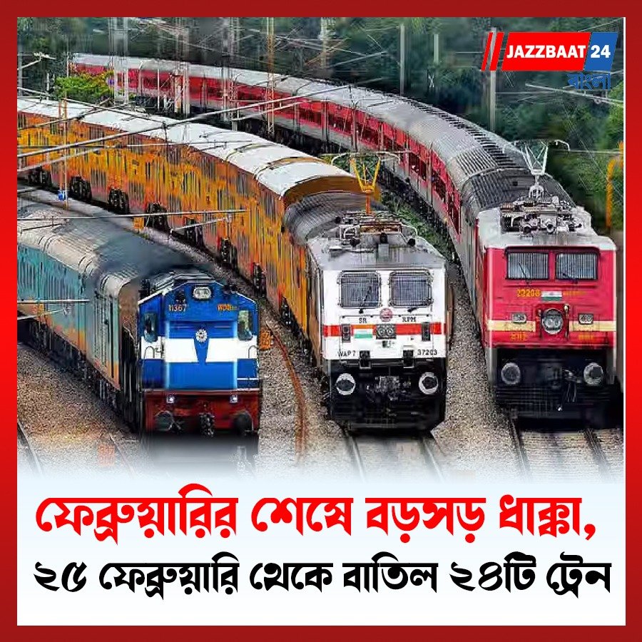 • ফেব্রুয়ারির শেষে বড়সড় ধাক্কা, ২৫ ফেব্রুয়ারি থেকে বাতিল ২৪টি ট্রেন