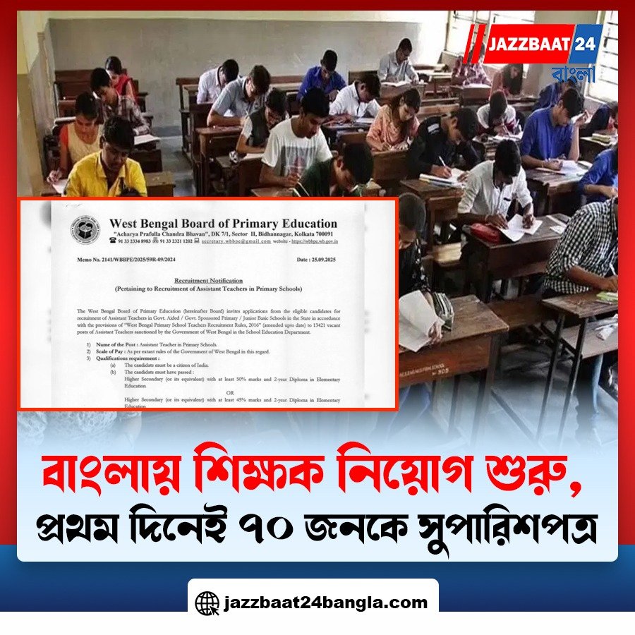 Jazzbaat 24 Bangla > রাজ্য > বাংলায় শিক্ষক নিয়োগ শুরু, প্রথম দিনেই ৭০ জনকে সুপারিশপত্র