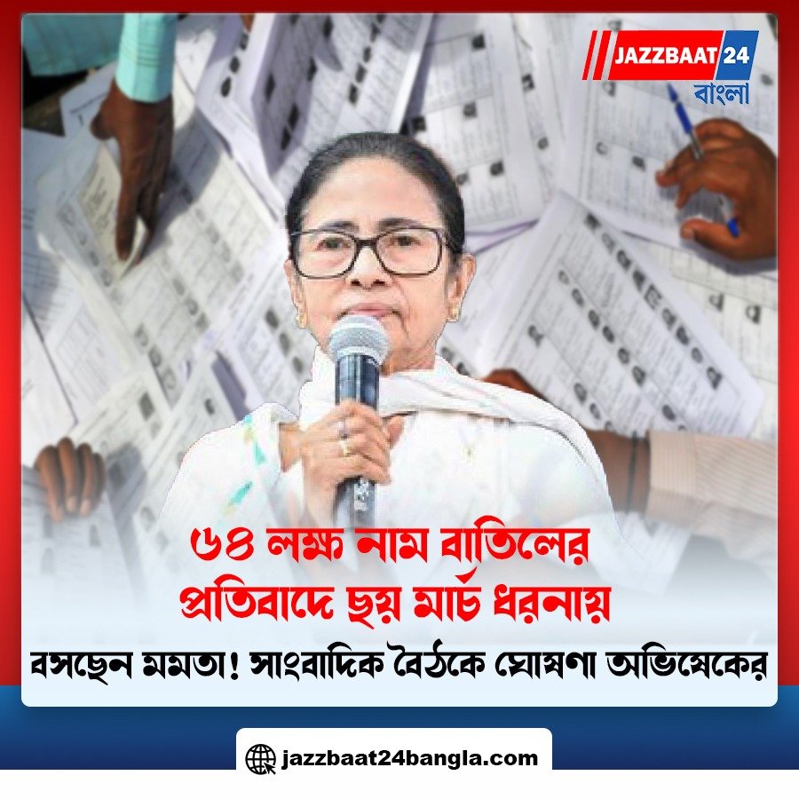 রাজ্যের সংশোধিত ভোটার তালিকা বা এসআইআর-এর চূড়ান্ত তালিকা ঘিরে নির্বাচন কমিশনের বিরুদ্ধে সরাসরি সংঘাতের পথে নামল তৃণমূল কংগ্রেস। তালিকায় প্রায় ৬৪ লক্ষ মানুষের নাম বাদ পড়ার প্রতিবাদে আগামী ৬ মার্চ ধর্মতলার মেট্রো চ্যানেলে ধরনায় বসছেন মুখ্যমন্ত্রী মমতা বন্দ্যোপাধ্যায়। রবিবার সাংবাদিক বৈঠকের মাধ্যমে এই ঘোষণা করেন তৃণমূলের সর্বভারতীয় সাধারণ সম্পাদক অভিষেক বন্দ্যোপাধ্যায়।