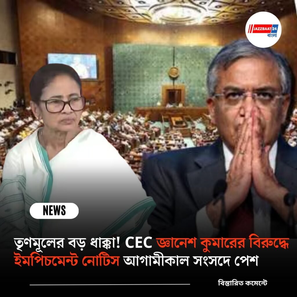 নয়াদিল্লি: তৃণমূল কংগ্রেস দ্রুত পদক্ষেপ নিতে চলেছে। দেশের মুখ্য নির্বাচন কমিশনার জ্ঞানেশ কুমার-এর বিরুদ্ধে ইমপিচমেন্ট প্রস্তাব পেশের জন্য প্রয়োজনীয় স্বাক্ষর সংগ্রহ প্রায় শেষ হয়েছে। সূত্রের খবর, লোকসভা থেকে ১৩০ জন এবং রাজ্যসভা থেকে ৬৩ জন সাংসদ ইতিমধ্যেই স্বাক্ষর করেছেন। প্রয়োজনীয় সংখ্যার বেশি হওয়ায়, আগামীকালই নোটিস সংসদে পেশ করতে পারে তৃণমূল।