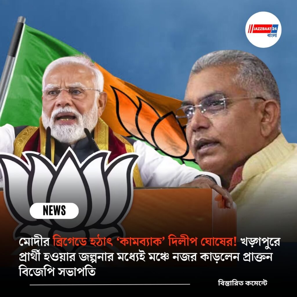 পশ্চিমবঙ্গে বিধানসভা নির্বাচন যত এগিয়ে আসছে, ততই রাজনৈতিক সমীকরণ বদলাতে শুরু করেছে রাজ্য রাজনীতিতে। এরই মধ্যে কলকাতার ব্রিগেড ময়দানে প্রধানমন্ত্রী নরেন্দ্র মোদীর সভামঞ্চে দীর্ঘদিন পর দেখা গেল বিজেপির প্রাক্তন রাজ্য সভাপতি দিলীপ ঘোষকে। শনিবারের এই উপস্থিতিকে অনেকেই তাঁর রাজনৈতিক ‘কামব্যাক’-এর ইঙ্গিত হিসেবে দেখছেন।