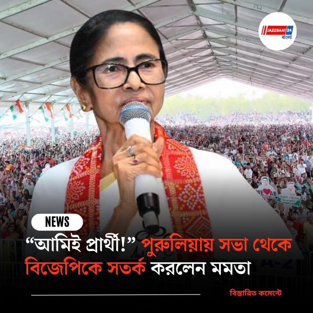 পুরুলিয়ার সভায় মমতা বন্দ্যোপাধ্যায় সরাসরি ঘোষণা করলেন, “কে প্রার্থী দেখতে হবে না। আমিই প্রার্থী। আমার উপর ভরসা রেখে ভোটটা দেবেন। তৃণমূলই সরকার গড়বে।” তিনি আরও যোগ করেন, “যতই চক্রান্ত করো, সব হবে ব্যর্থ। আর যেন জঙ্গলমহলে অশান্তি ফিরে না আসে। ভোটের আগে টাকা দিলে তা নিয়ে নেবেন, ভোট দেবেন না। ওরা বলে এক, করে আর এক।”