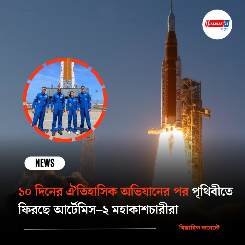 Jazzbaat 24 Bangla > বিদেশ > ১০ দিনের ঐতিহাসিক অভিযানের পর পৃথিবীতে ফিরছে আর্টেমিস–২ মহাকাশচারীরা