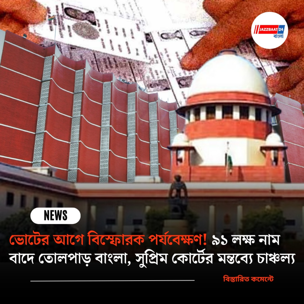 Jazzbaat 24 Bangla > দেশ > ভোটের আগে বিস্ফোরক পর্যবেক্ষণ! ৯১ লক্ষ নাম বাদে তোলপাড় বাংলা, সুপ্রিম কোর্টের মন্তব্যে চাঞ্চল্য