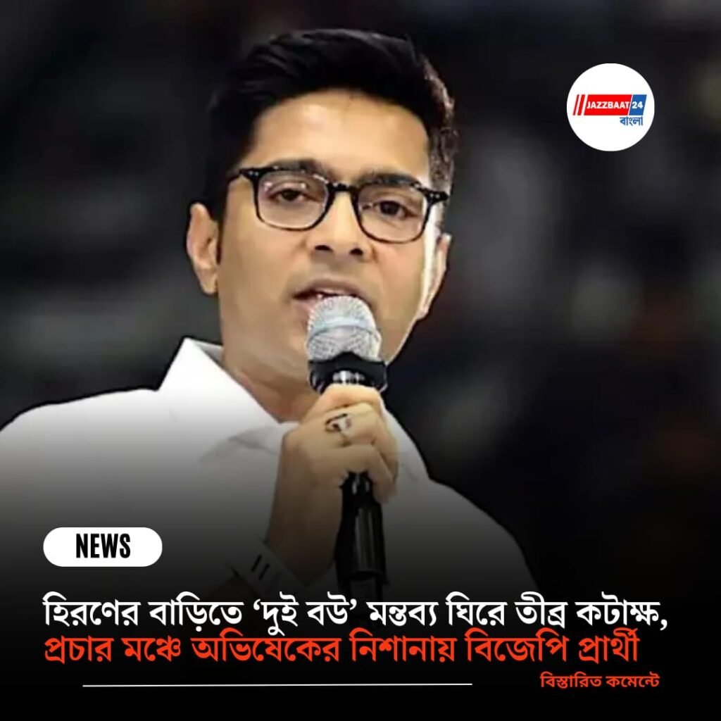 বক্তব্যের এক পর্যায়ে অভিষেক হিরণকে কটাক্ষ করে বলেন, “হিরণ এখন বিয়ে করেছে, বাড়িতে দু’টো বউ, আর সোহমের একটাই বউ…”—এই মন্তব্য ঘিরেই শুরু হয়েছে রাজনৈতিক বিতর্ক।