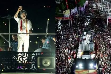 তামিলনাডুর কারুরে অভিনেতা ও তামিলাগা ভেট্রি কাজাঘম (টিভিকে) প্রধান বিজয়ের নির্বাচনী সভায়…