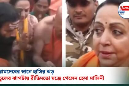 রামদেবের স্নানে হাসির ঝড়, চুলের ঝাপটায় রীতিমতো মজে গেলেন হেমা মালিনী